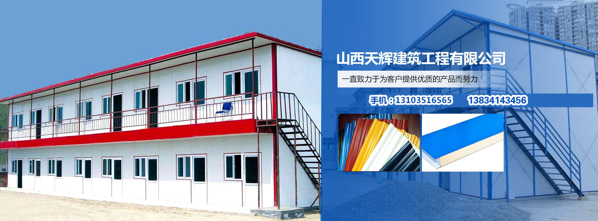 山西天輝建筑工程有限公司是專業(yè)從事彩鋼板生產(chǎn),鋼結(jié)構(gòu)、住人集裝箱、活動房設(shè)計和專業(yè)安裝、維護的一家企業(yè),我們銷售的產(chǎn)品引進全自動彩鋼夾芯板流水線以銷售多種規(guī)格的彩鋼復(fù)合夾芯板...